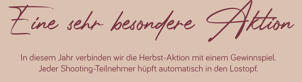 Wir sind auf alles vorbereitet! Bei herrlichem Wetter bieten wir unsere Herbst-Minis in der Natur an. Parallel dazu haben wir diesmal auch traumhaft schöne Herbstkulissen im Atelier für euch gestaltet für den Fall, dass es draußen ungemütlich wird.